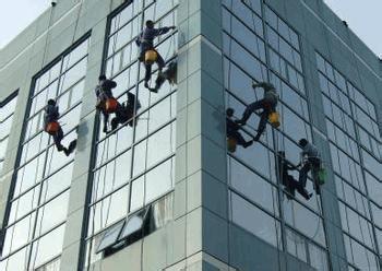 高層外墻清潔、高層玻璃幕清潔、高層外墻粉刷,高空外墻廣告安裝,因為高層外墻工程存在著危險性和復(fù)雜性,所以這項工作以是有著相當(dāng)程度的科學(xué)性和專業(yè)性。 特此我們的施工人員是經(jīng)過專業(yè)培訓(xùn)后及有多次高空作業(yè)經(jīng)驗。我們一直采用坐式吊繩清潔方法: